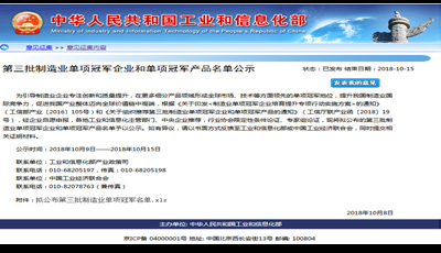 10 月8 日,工业和信息化部产业政策司公布了《关于第三批制造业单项冠军企业和单项冠军产品名单公示》,新疆乐鱼登录官网首页-乐鱼(中国)公司根据《关于印发< 制造业单项冠军企业培育提升专项行动实施方案> 的通知》(工信部产业〔2016〕105 号)和《关于组织推荐第三批制造业单项冠军企业和单项冠军产品的通知》(工信厅联产业函〔2018〕19 号)要求,组织材料申报了制造业单项冠军产品- 异亮氨酸,截至目前已顺利通过审核并公示,公示于10 月15 日结束。异亮氨酸单项冠军产品的成功授予, 将形成全球市场、技术等方面领先的单项冠军地位,提升新疆乐鱼登录官网首页-乐鱼(中国)公司的国际竞争力。